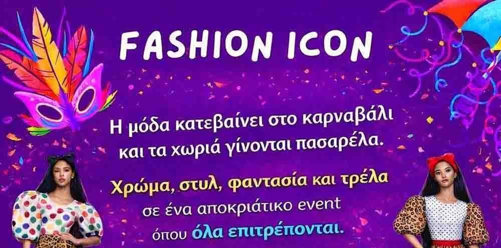 Με τίτλο “FASHION ICON”, μια αποκριάτικη δράση φέρνει τη μόδα στο επίκεντρο του καρναβαλικού κλίματος και μετατρέπει τα χωριά σε μια μεγάλη, ανοιχτή πασαρέλα. Το concept στηρίζεται στην ελευθερία της έκφρασης και στη διάθεση για δημιουργικότητα, καλώντας τους συμμετέχοντες να κινηθούν έξω από τα συνηθισμένα, με εμφανίσεις που συνδυάζουν χρώμα, στιλ, φαντασία και μια πιο τολμηρή, παιχνιδιάρικη διάθεση.